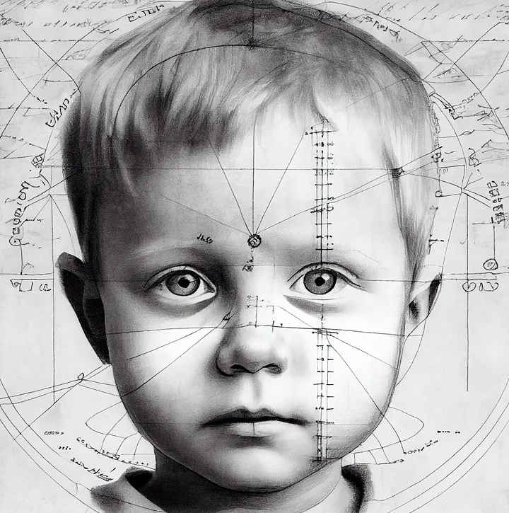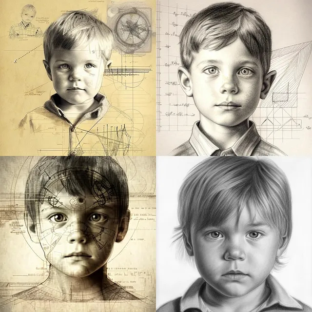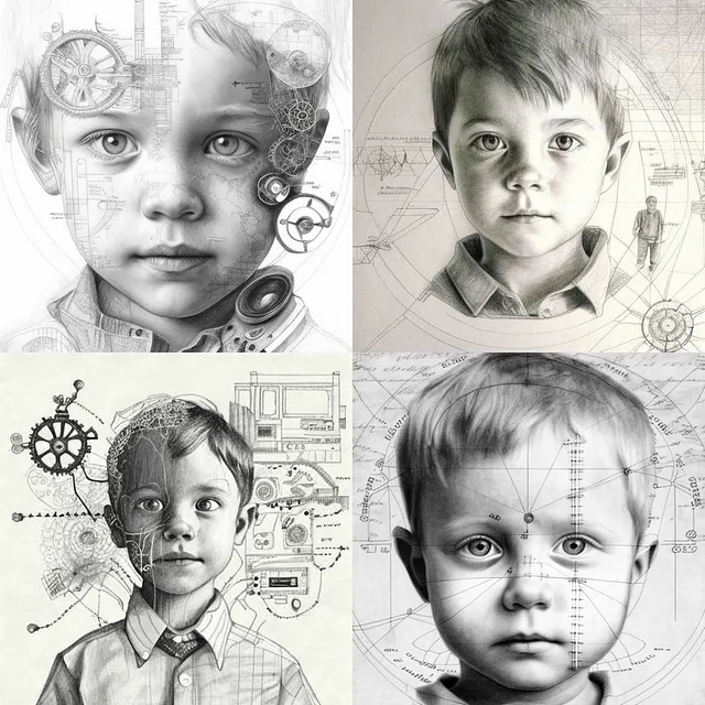 Prompt: diagrammatic drawing of a young boy— v 4