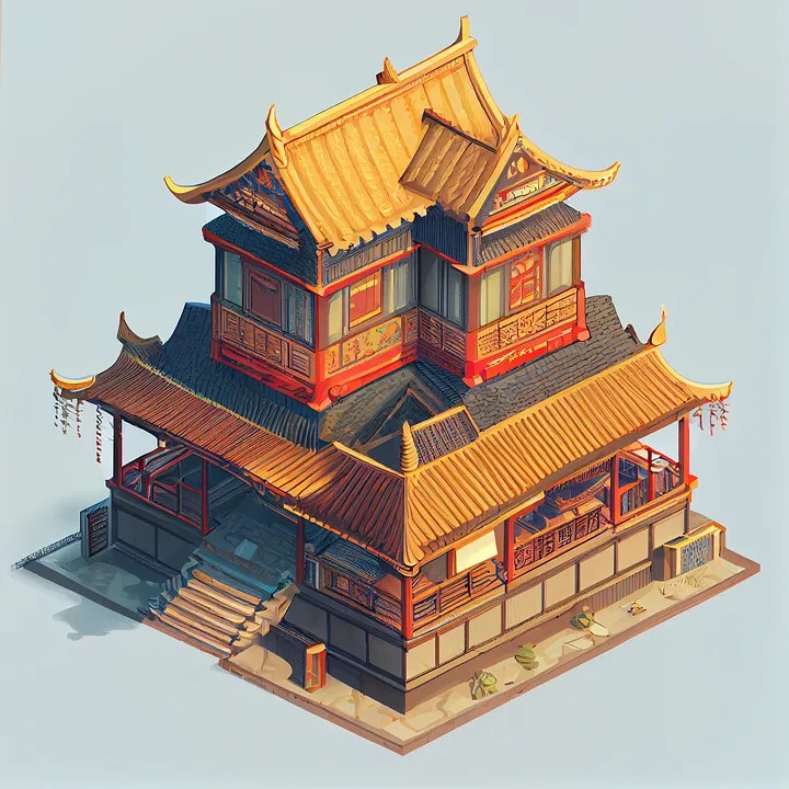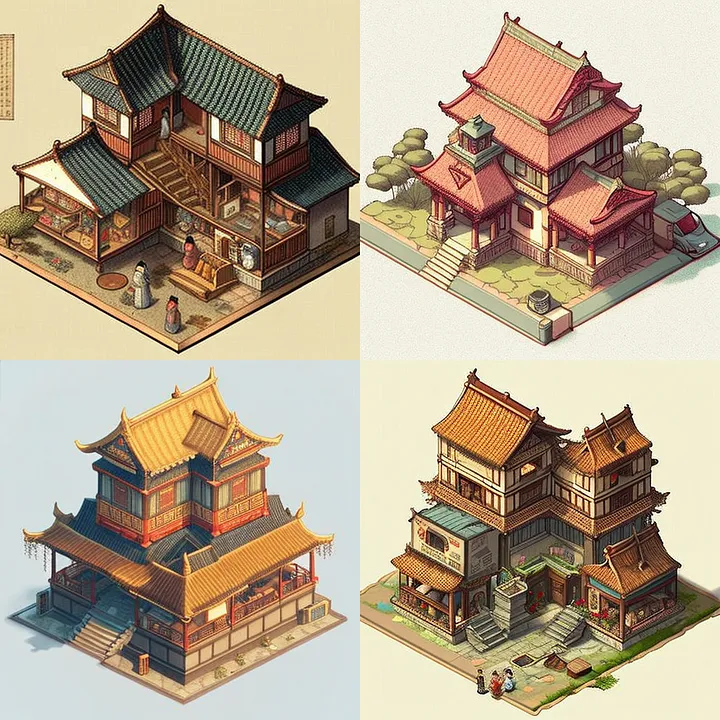 Prompt: house from the 1888 year in china, isometric illustration — v 4