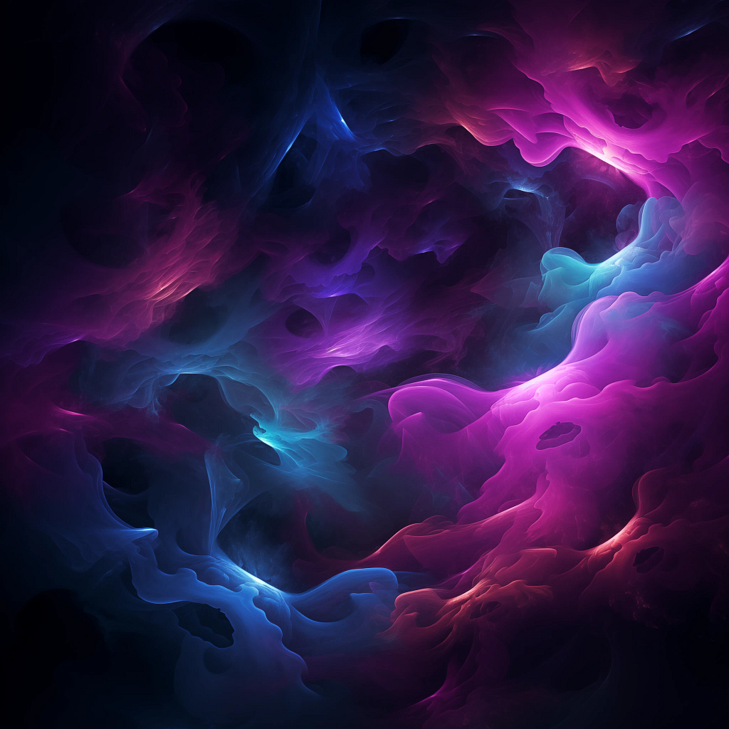 Prompt: purple and blue and black gelatinous neuron clouds of shifting hues pulsing and writhing dream vision against a dark backdrop