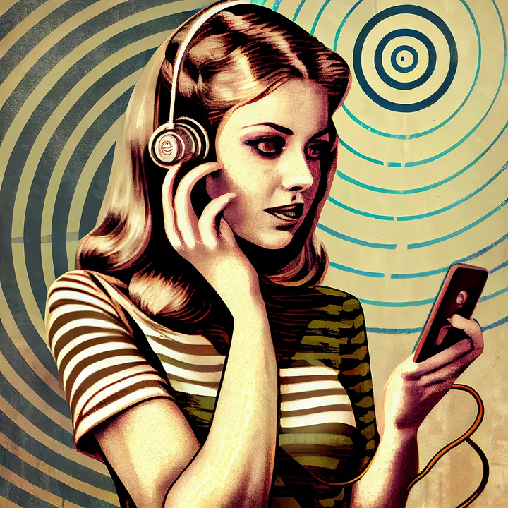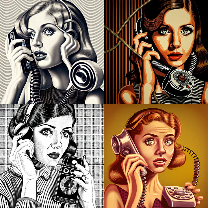 Prompt: young beautiful woman with a vintage phone, op art— v 4